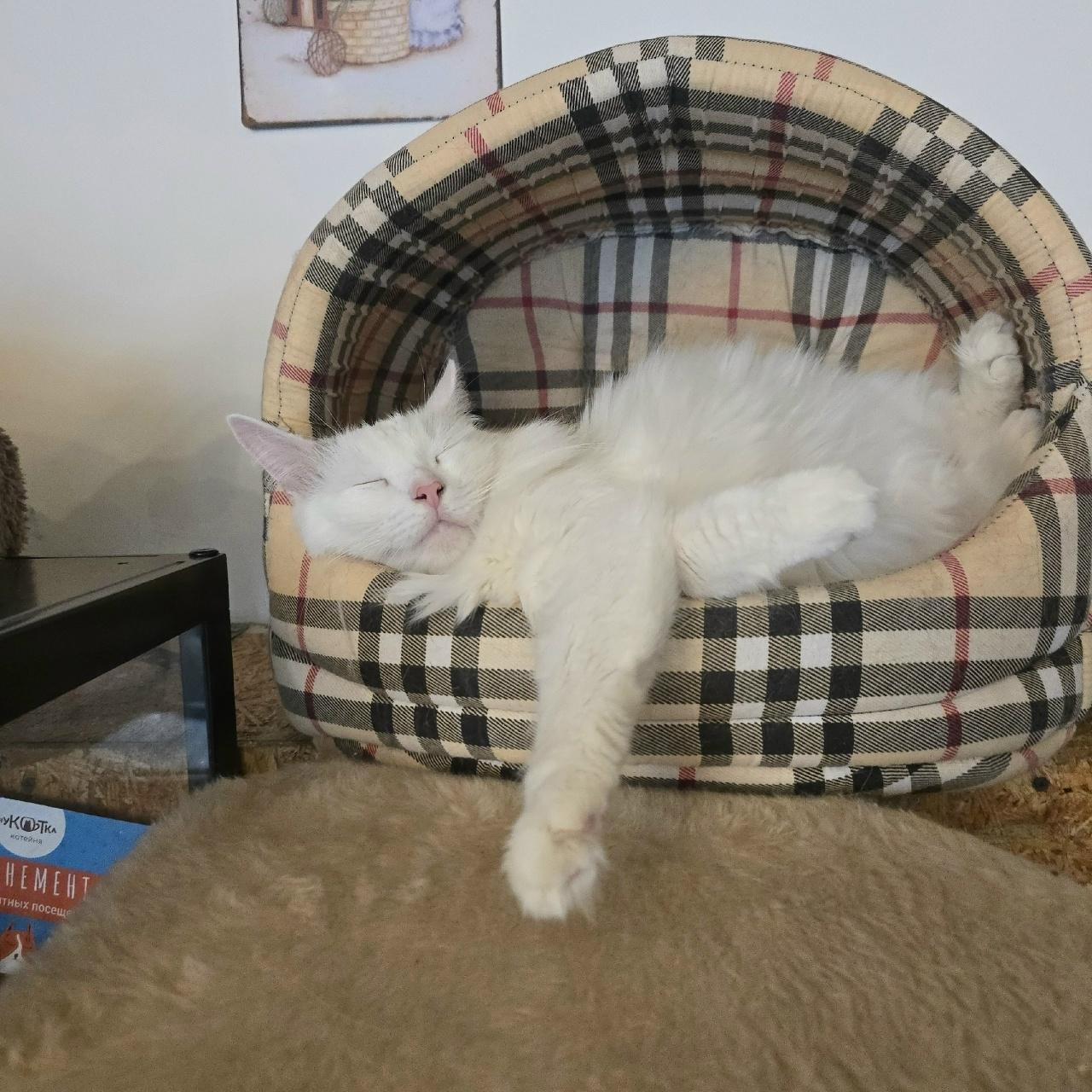 В настоящее время животное находится в местном котокафе, где временно проживает и ожидает переезда в постоянный дом. Волонтёры заведения помогают питомцам обрести семьи.