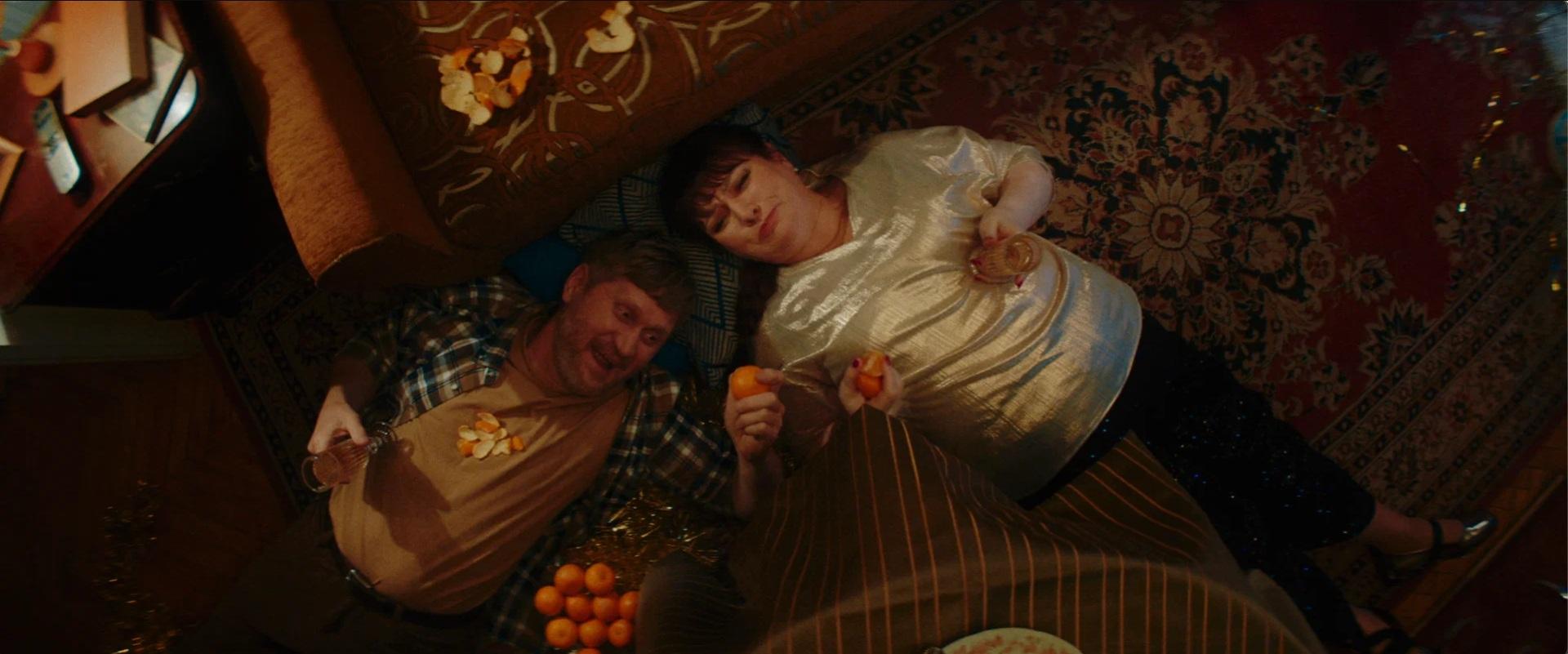 Андрей Рожков и Ольга Картункова в сцене с мандаринами.