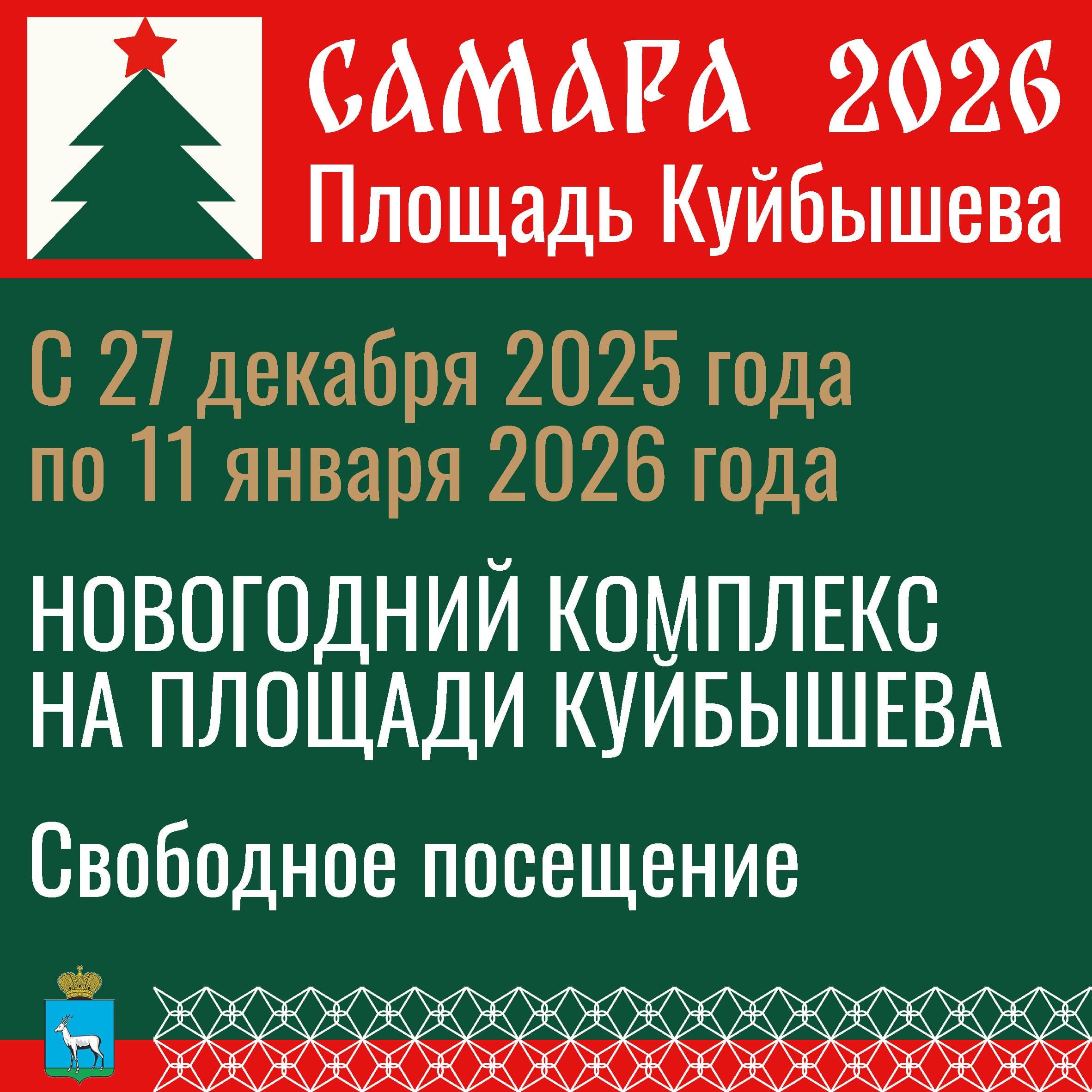 Площадь Куйбышева будет открыта для посещения 1, 2 и 7 января 2026 года.