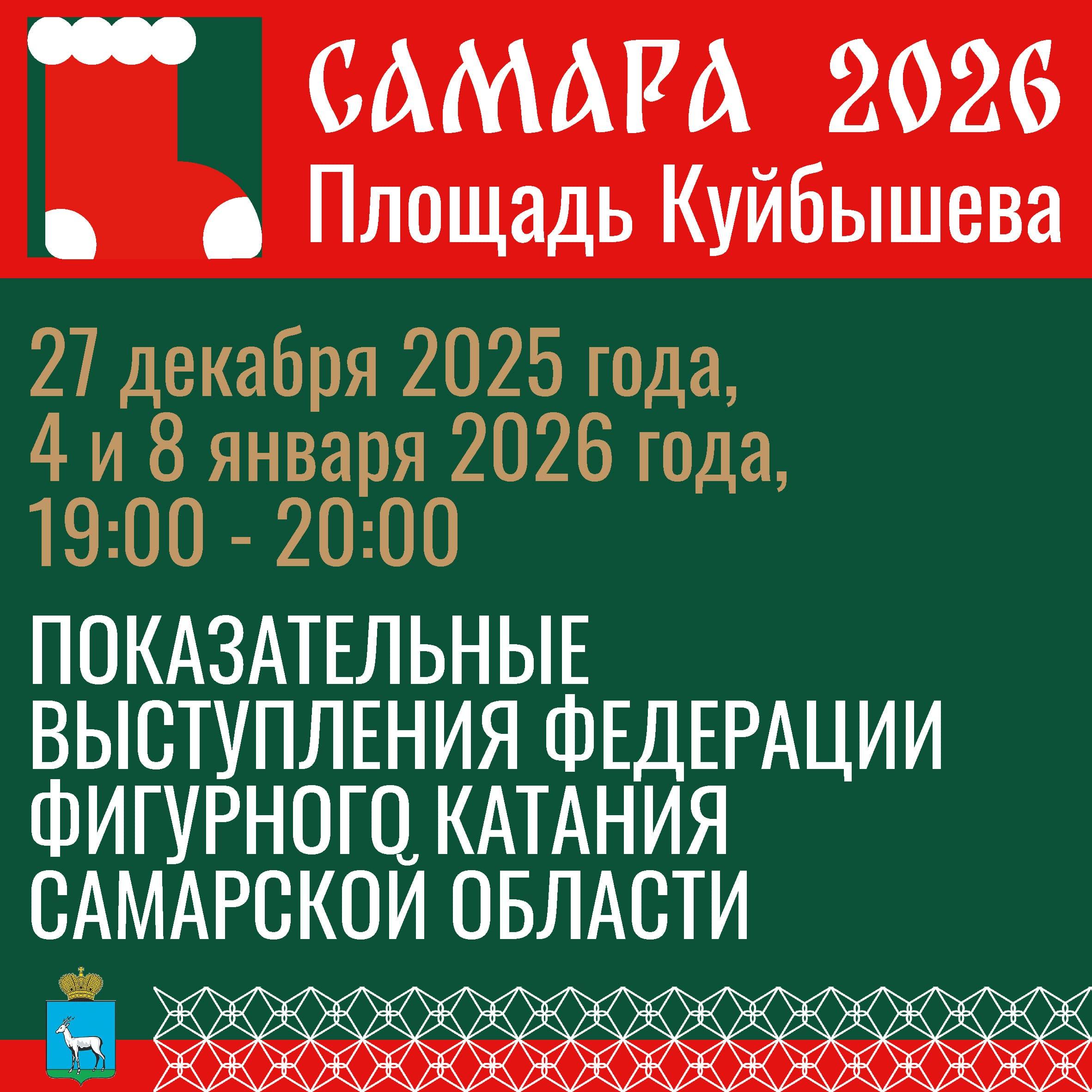 Администрация Самары обнародовала план новогодних празднеств. Для жителей и гостей города подготовили свыше 2000 мероприятий, включая уличные гуляния и выступления фигуристов.