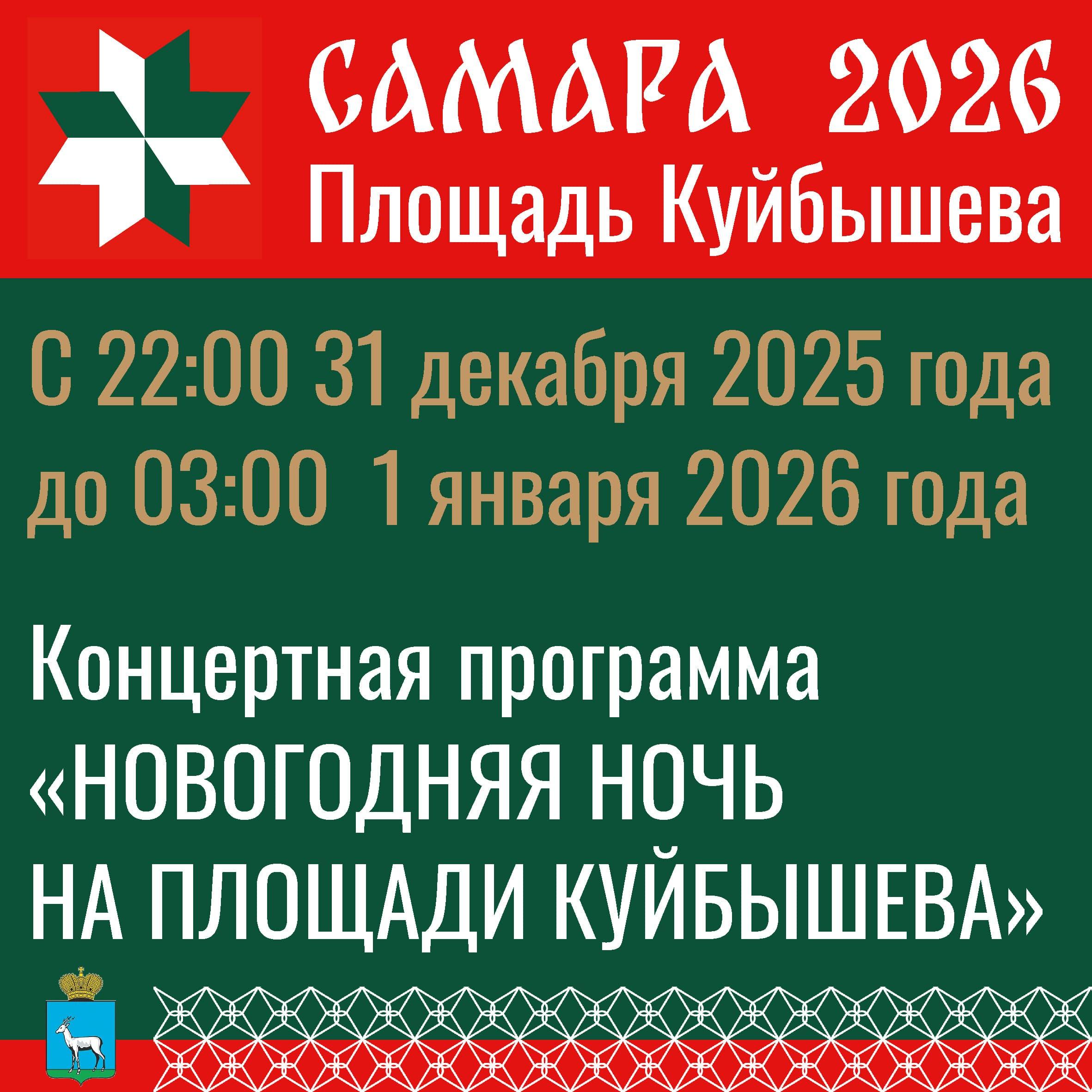 Желающие встретить Новый 2026 год на площади Куйбышева смогут присоединиться к празднику. Марафон стартует в 22:00 31 декабря и завершится в 3 часа ночи.