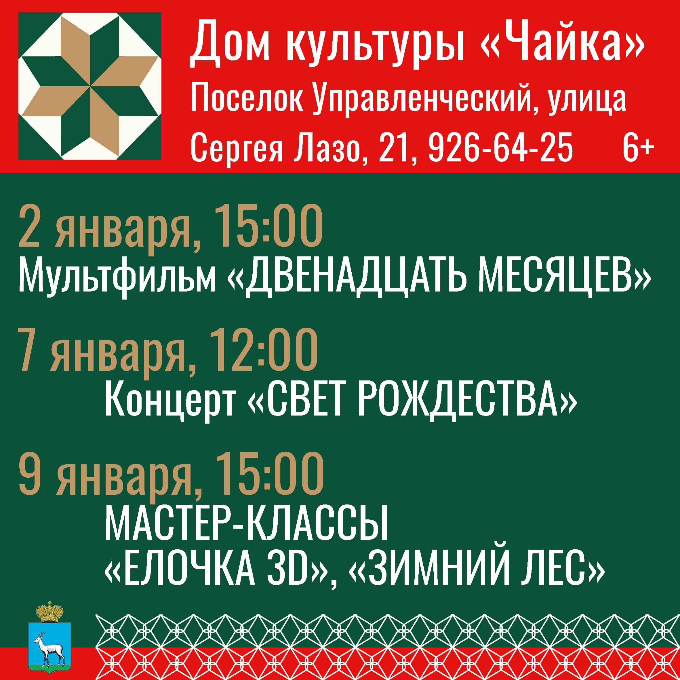Афиша мероприятий в домах культуры Самары представлена здесь.