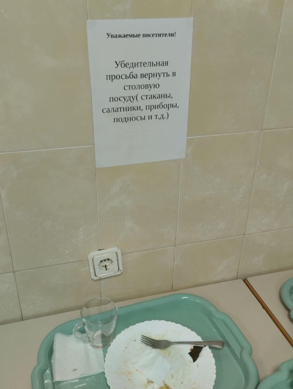 Сопроводив сообщение фотографиями, Абдалкин показал одно из обращений, размещённых в столовой. В нём содержится «Убедительная просьба вернуть к столовую посуду (стаканы, салатники, приборы, подносы, и т. д.)».