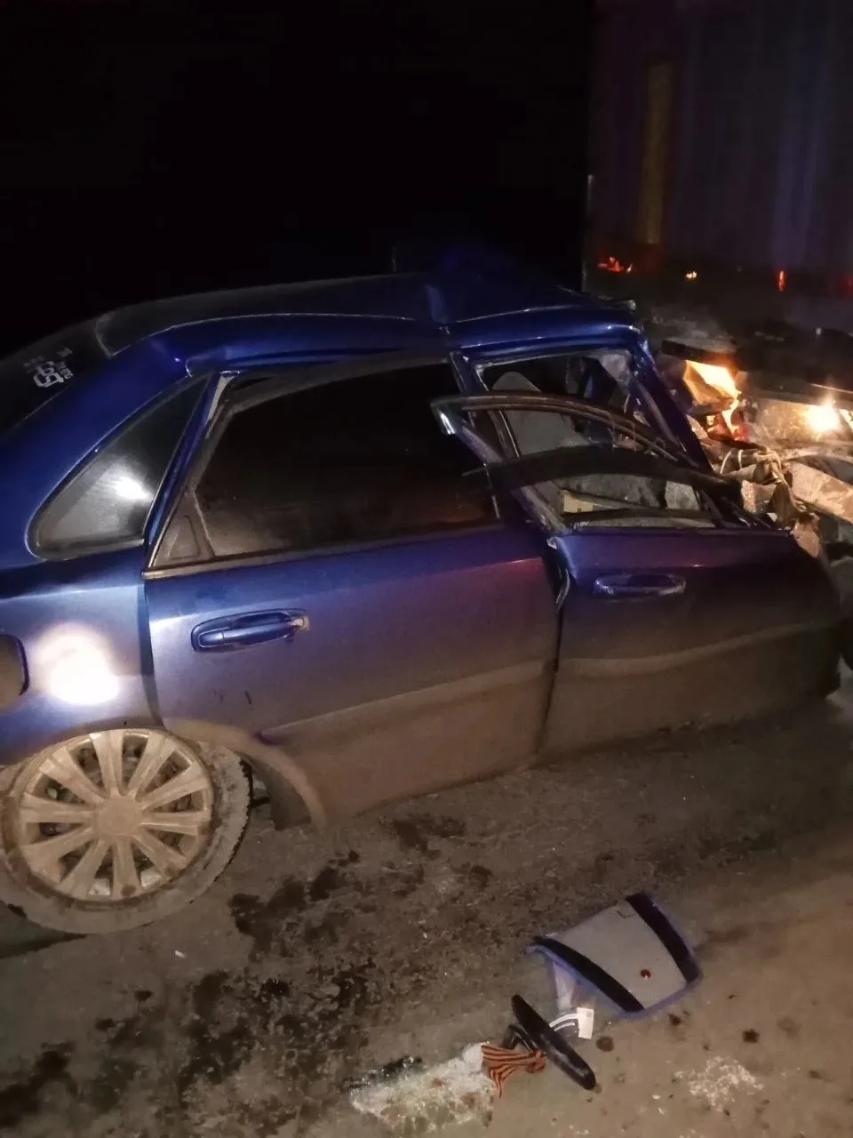 В условиях темноты 49-летний водитель автомобиля Chevrolet Lacetti не заметил стоящую фуру и на полном ходу врезался в неё. Удар был настолько сильным, что легковая машина сильно деформировалась.