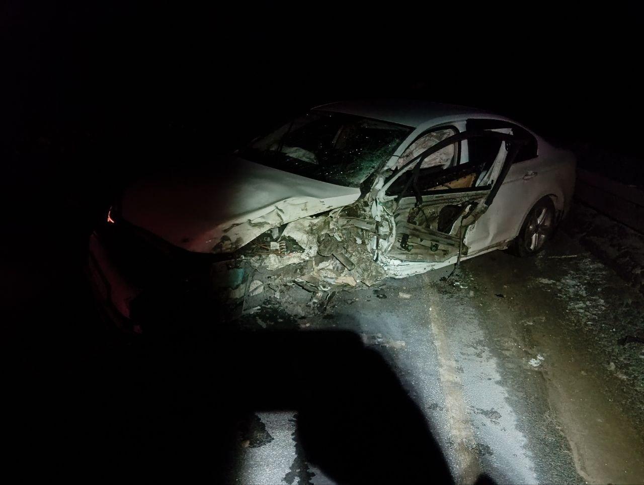 Около 3:30 утра грузовик марки Dongfeng и автомобиль Volkswagen столкнулись лоб в лоб. После аварии одна из машин загорелась.