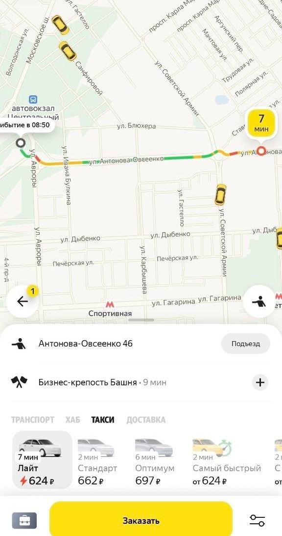 Поездка продолжительностью 9 минут обошлась в 624 рубля.