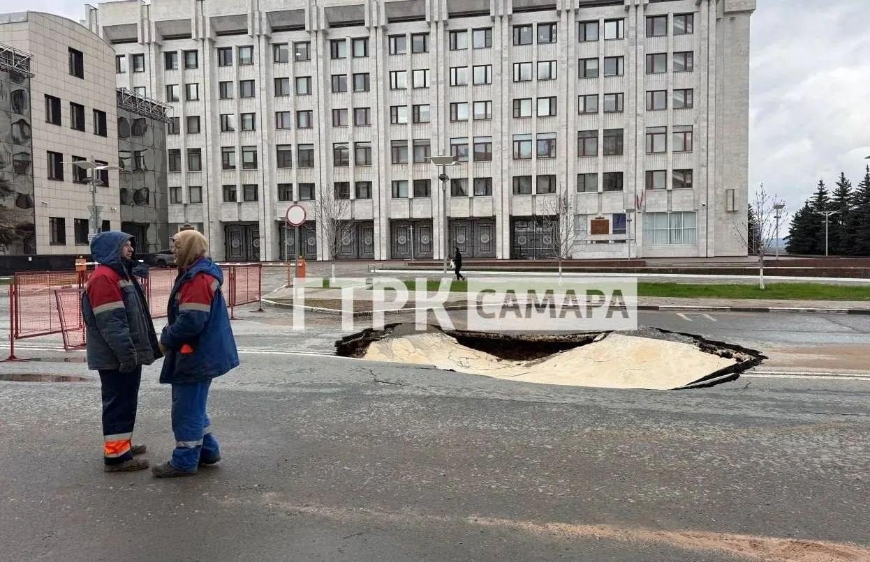 В центре Самары, около здания областного правительства, часто называемого «белым домом», на проезжей части улицы Молодогвардейской образовался значительный провал. Причиной аварии, по предварительным данным, стал технологический отказ на магистральном водоводе.