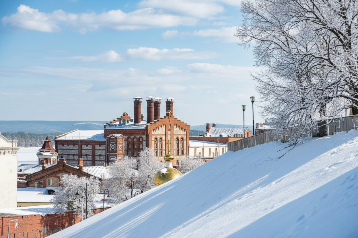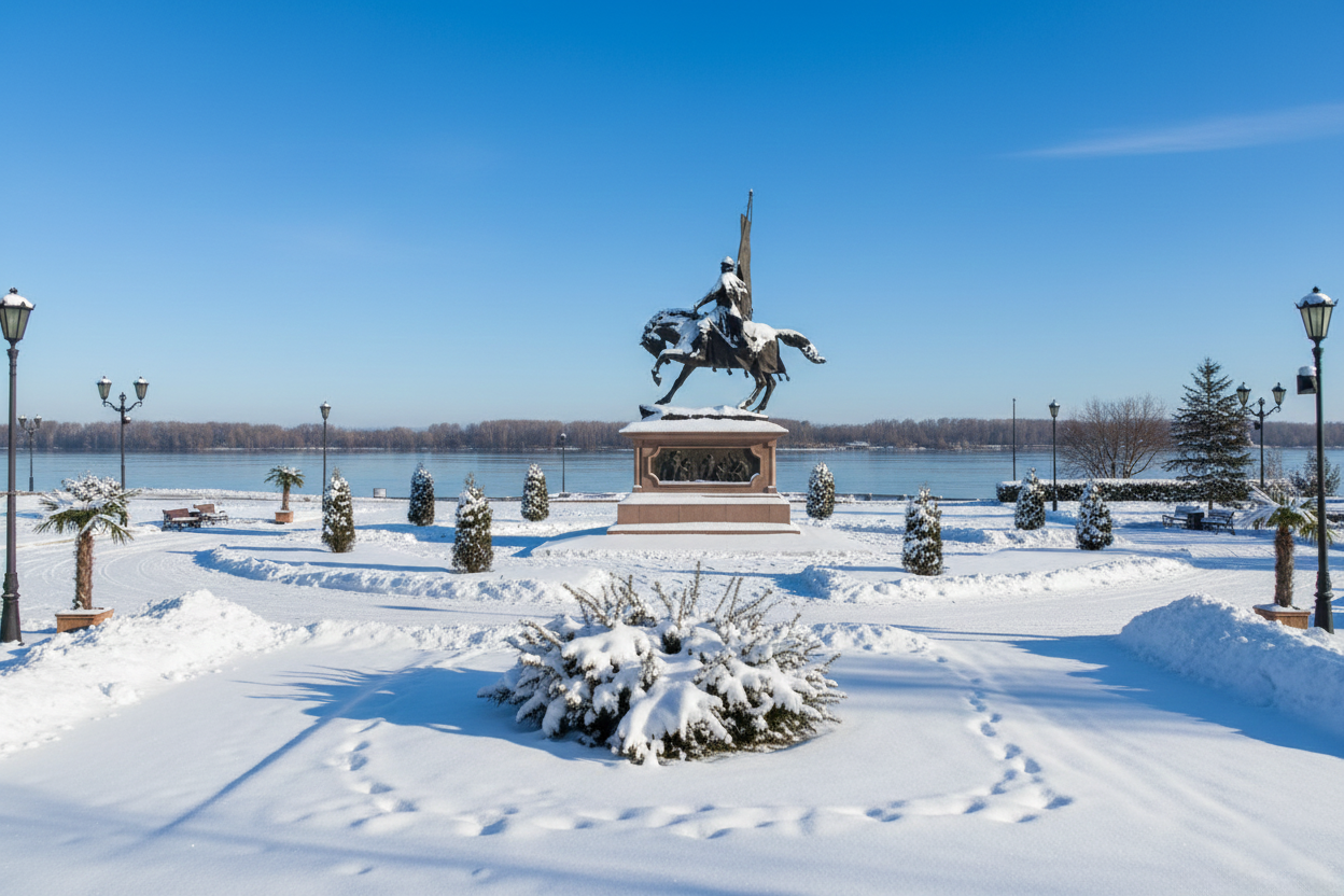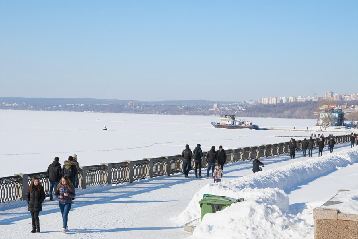 Чтобы представить зимнюю атмосферу, использовали искусственный интеллект. Нейросеть создала изображения Самары, покрытой идеальными искрящимися сугробами. На этих визуализациях видно, как снежно могло бы выглядеть волжское побережье в новогодний период.